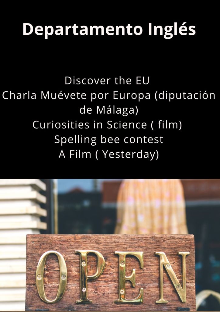 Durante esta semana se van a desarrollar una serie de actividades especiales con motivo de la Semana Cultural. A continuación se muestran los carteles con las actividades preparadas por cada departamento didáctico.