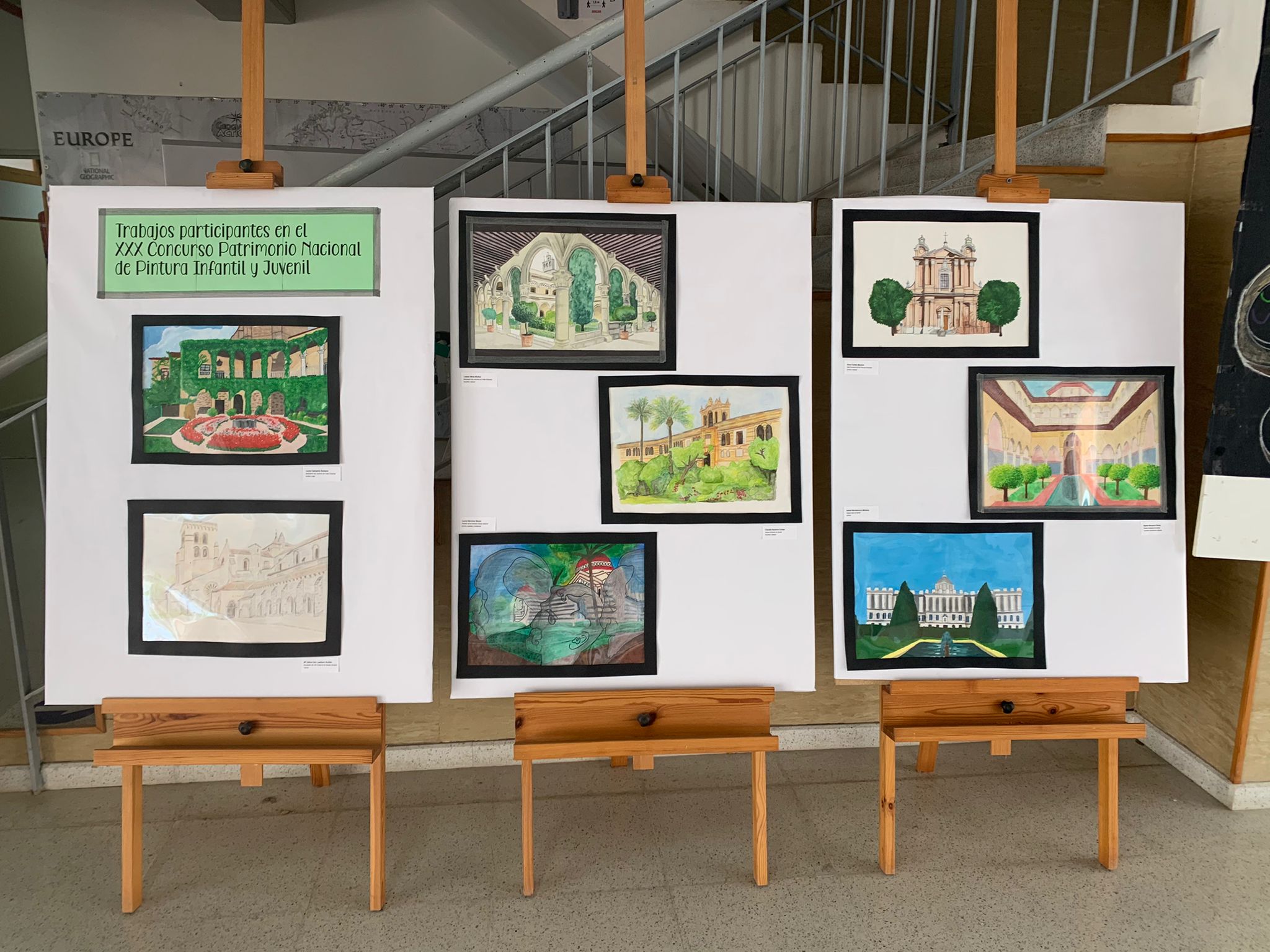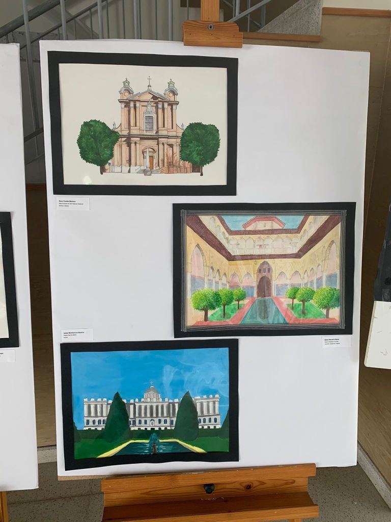 Maravillosa exposición de dibujos y pinturas realizados por nuestro alumnado para el concurso de Patrimonio Nacional en la asignatura de Plástica.