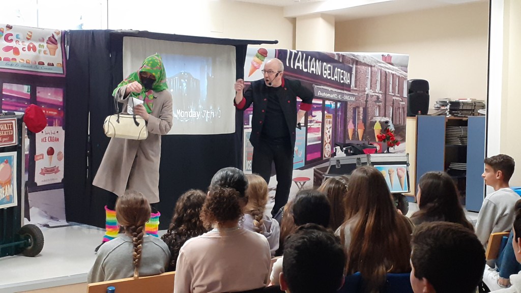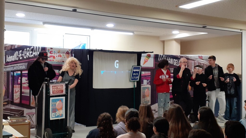 Dentro del Programa de Competencia Comunicativa en Enseñanza Bilingüe, el lunes 9 de febrero nuestro centro organizó una obra de teatro en inglés para el alumnado de 1º y 2º ESO. La obra se titula “Only Human”, una comedia interactiva sobre inteligencia artificial, organizada por la compañía de teatro Moving On. Ha sido una actividad gratuita para el alumnado gracias a la ayuda concedida por el Fondo Social Europeo Plus y la Consejería de Desarrollo Educativo y Formación Profesional de la Junta de Andalucía.