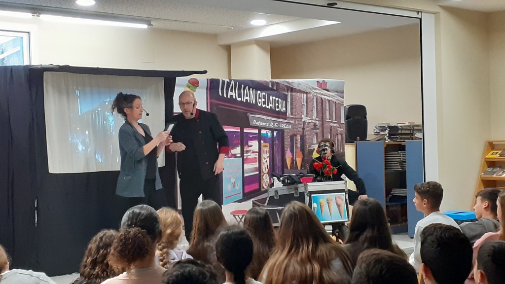 As part of the Communicative Competence in Bilingual Education Program, our school organized a play in English on Monday 9th for 1st and 2nd year ESO students. The play, titled “Only Human,” is an interactive comedy about artificial intelligence, presented by the Moving On theater company. This activity was free for students thanks to funding from the European Social Fund Plus and the Andalusian Regional Government’s Department of Education and Vocational Training.