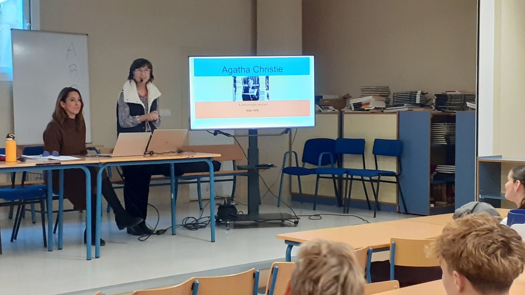 En la semana del 16 al 20 de febrero hemos celebrado la Semana Cultural en nuestro centro. Estas son algunas de las actividades que hemos llevado a cabo: en 1ºESO hemos llevado a cabo un concurso de “Spelling Bee”, un concurso de deletrear palabras en inglés, donde el alumnado ha tenido que competir en grupos para conseguir tener el mayor número de palabras deletreadas correctamente. En 4ºDiversificación en colaboración con el Aula Específica hemos realizado la manualidad “palos de agua”, el alumnado de 4ºDiver ha ayudado al alumnado del aula específica a construirlos y decorarlos. En 2º Bachillerato se ha organizado una charla en inglés sobre Agatha Christie, impartido por nuestra antigua compañera de departamento y catedrática de inglés Dª Ana Quijano, charla que ha sido presentada anteriormente en la Universidad de Málaga.