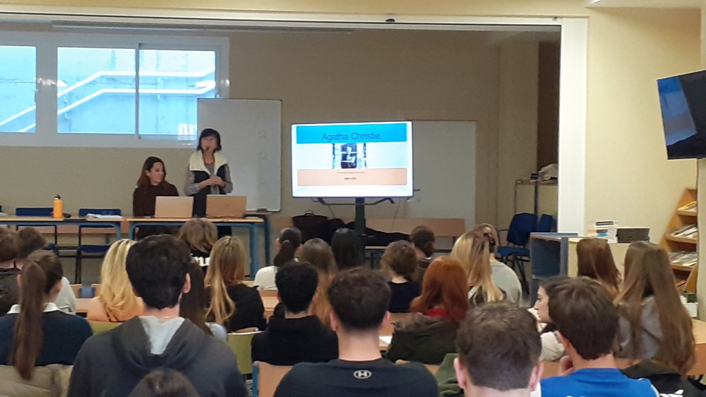During the week of February 16-20, we celebrated the Cultural Week at our school. Here are some of the activities we carried out: In 1st ESO (7th grade), we held a «Spelling Bee,» a competition where students competed in groups to spell the most words correctly. In 4th Diversification (10th grade), in collaboration with the Special Education Classroom, we made «rain sticks.» The Diversification students helped the Special Education students to make and decorate them. In 2nd Bachillerato (12th grade), we organized a talk in English about Agatha Christie, given by our former colleague and English professor, Ms. Ana Quijano. This talk had previously been presented at the University of Málaga.