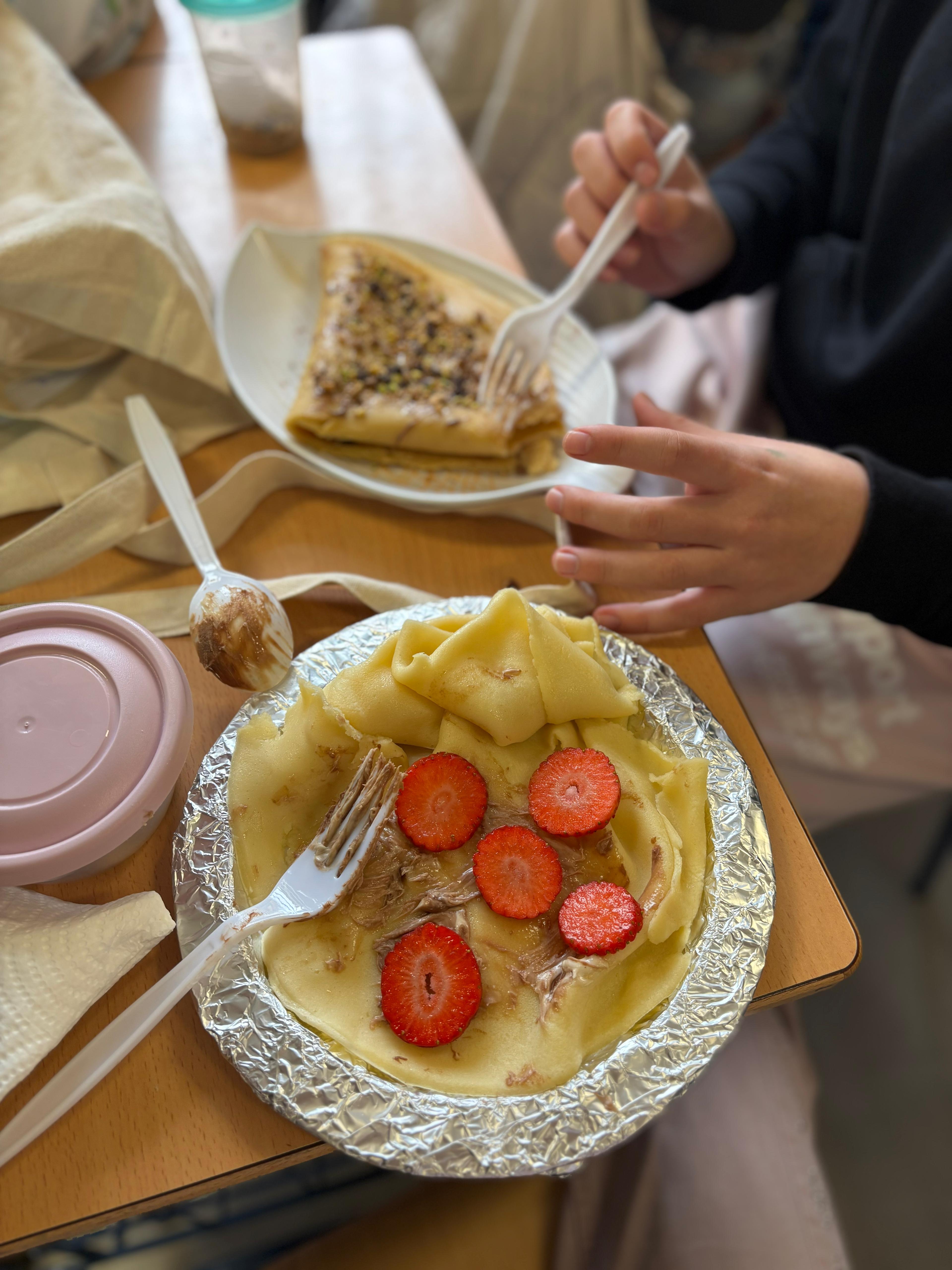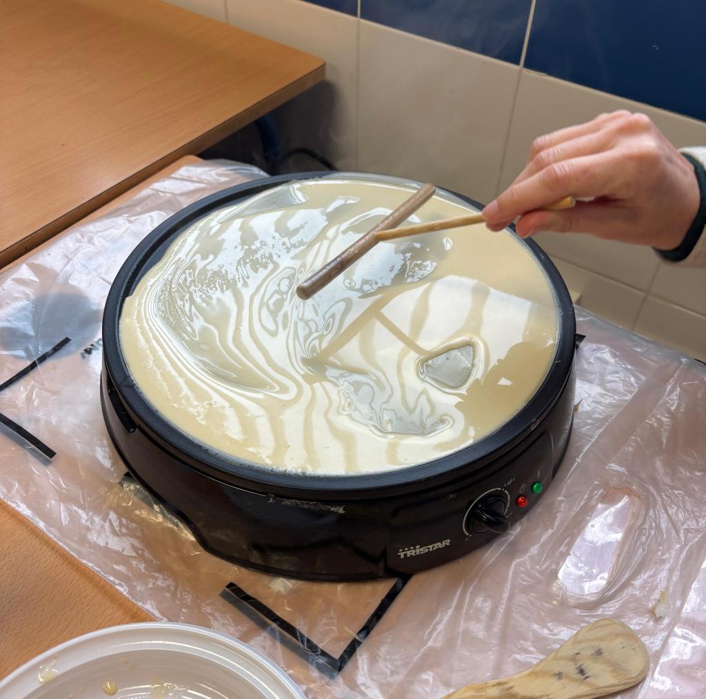 El martes 3 de febrero desde el área de francés celebramos la Chandeleur, la «fête de crêpes, degustando crepes caseros en 1º y 3º ESO y crepes recién hechos en 2ºy 4ºESO, mientras escuchamos música francófona. La actividad ha tenido muy buena acogida por el alumnado, que ha colaborado para crear un mural para el centro y así dar mayor reconocimiento a esta festividad francófona.